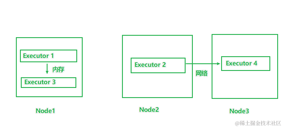 如果Executor1和3在同一个节点之上,那么内存传输即可