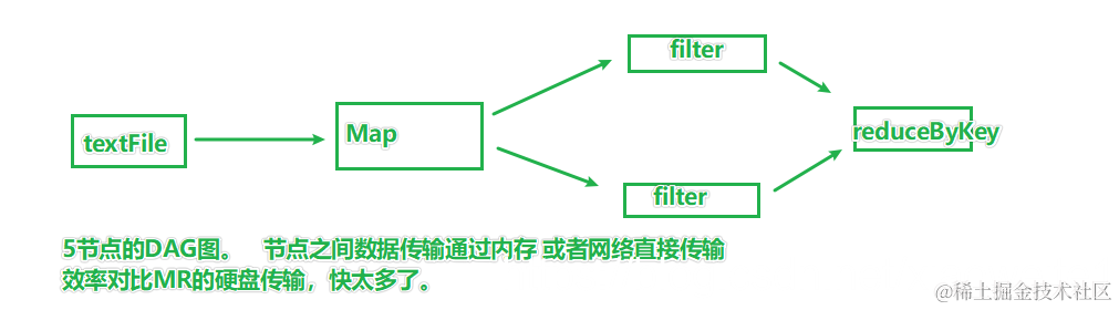 Spark会尽量安排DAG中的数据流转在内存中流转。尽量避免网络。