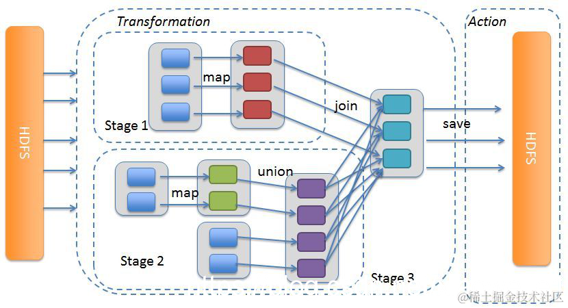 Job/DAG是以Action方法为界,遇到一个Action方法则触发一个Job;