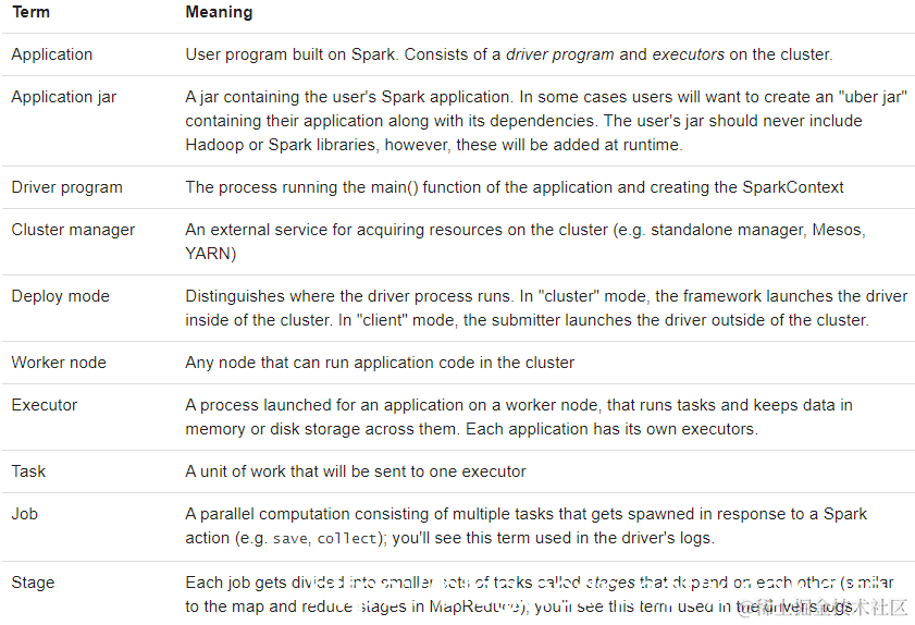 官方文档:http://spark.apache.org/docs/2.4.5/cluster-overview.html#glossary