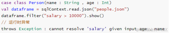 Dataframe API不支持编译时安全性,这限制了在结构不知道时操纵数据。