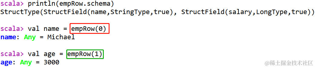 方式一:下标获取,从0开始,类似数组下标获取如何获取Row中每个字段的值呢????