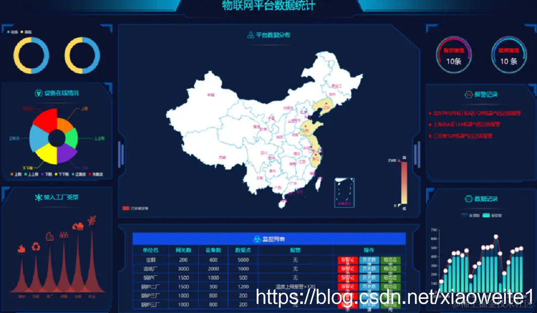 3)、工业大数据:现在的工场中, 设备是可以联网的, 汇报自己的运行状态, 在应用层可以针对这些数据来分析运行状况和稳健程度, 展示工件完成情况, 运行情况等,工业大数据的需求: