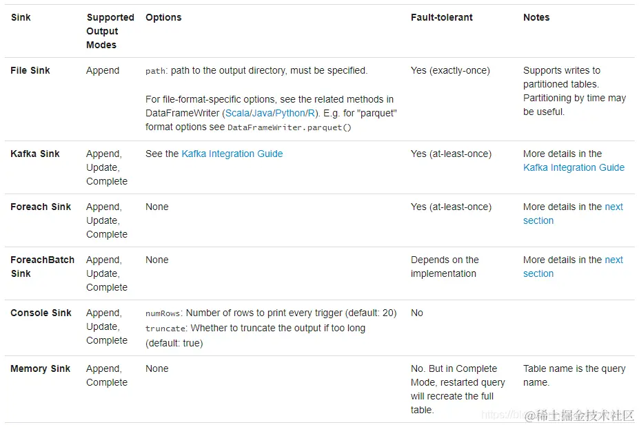 目前Structured Streaming内置FileSink、Console Sink、Foreach Sink(ForeachBatch Sink)、Memory Sink及Kafka Sink,其中测试最为方便的是Console Sink。