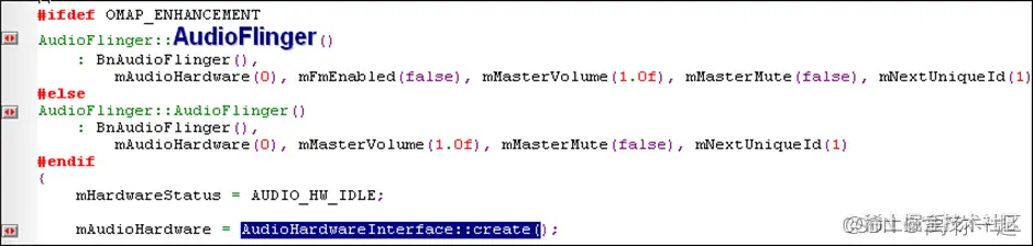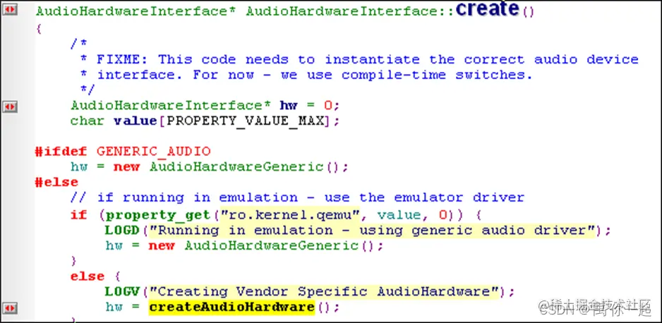 其对应实现为下图所示,在create中会调用createAudioHardware去创建底层的AudioHardware.AudioHardwareInterface.cpp (\frameworks\base\services\audioflinger)