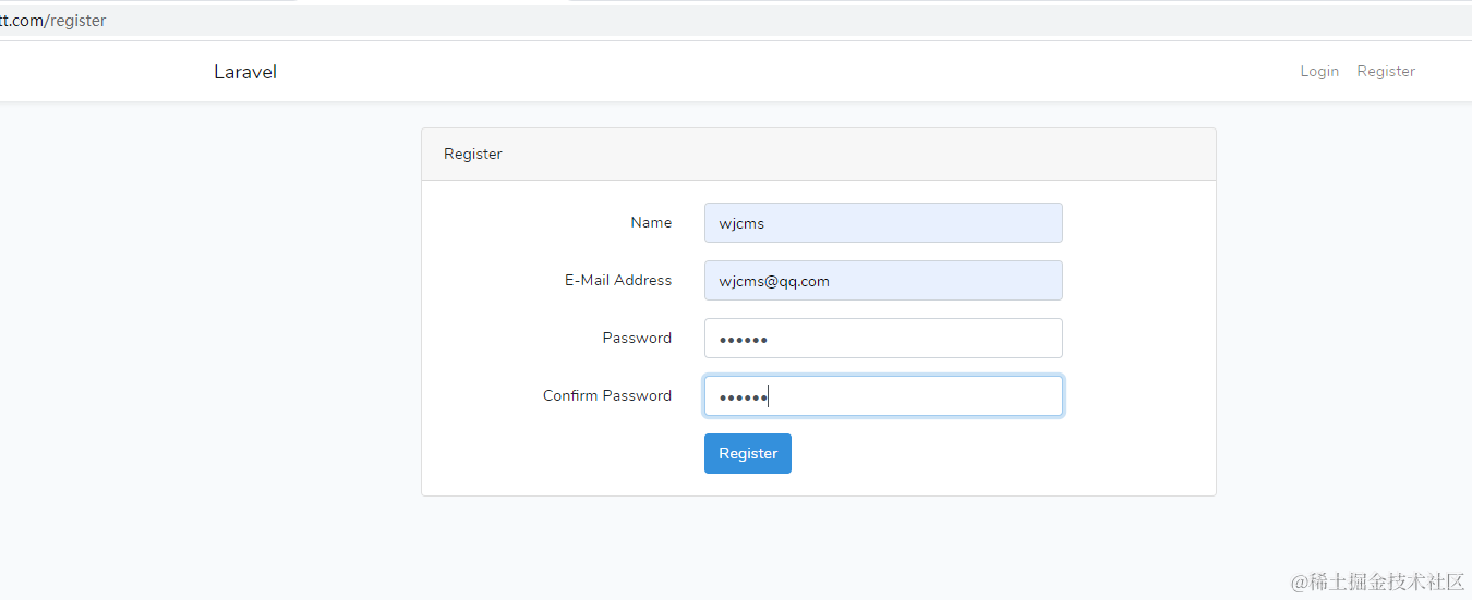 这样就创建好auth脚手架了,这样页面就可以访问了,但是登录注册还不能使用。