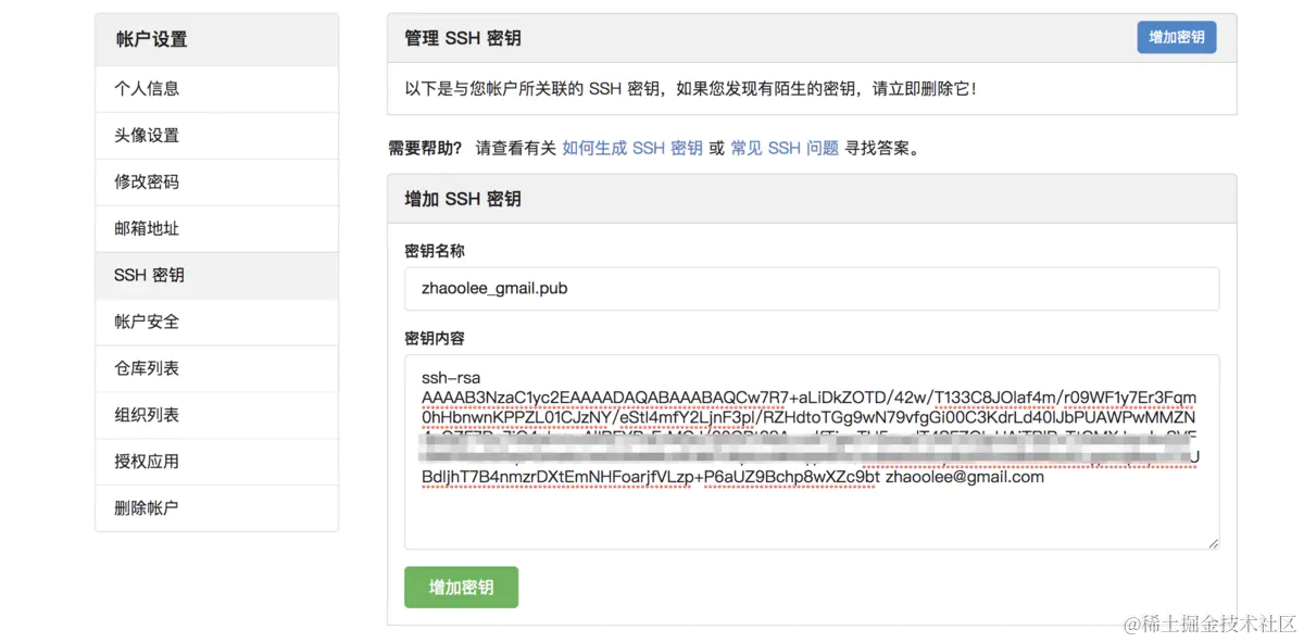 将公钥zhaoolee_gmail.pub添加到仓库