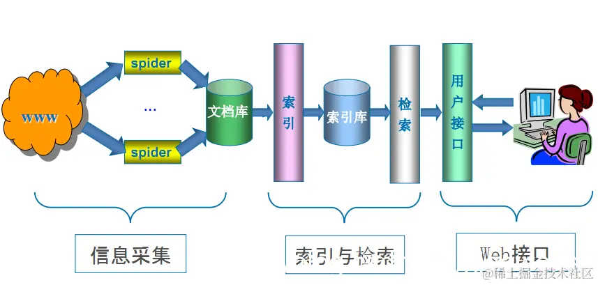 搜索引擎在对信息进行组织和处理后,为用户提供关键字检索服务,将用户检索相关的信息展示给用户。