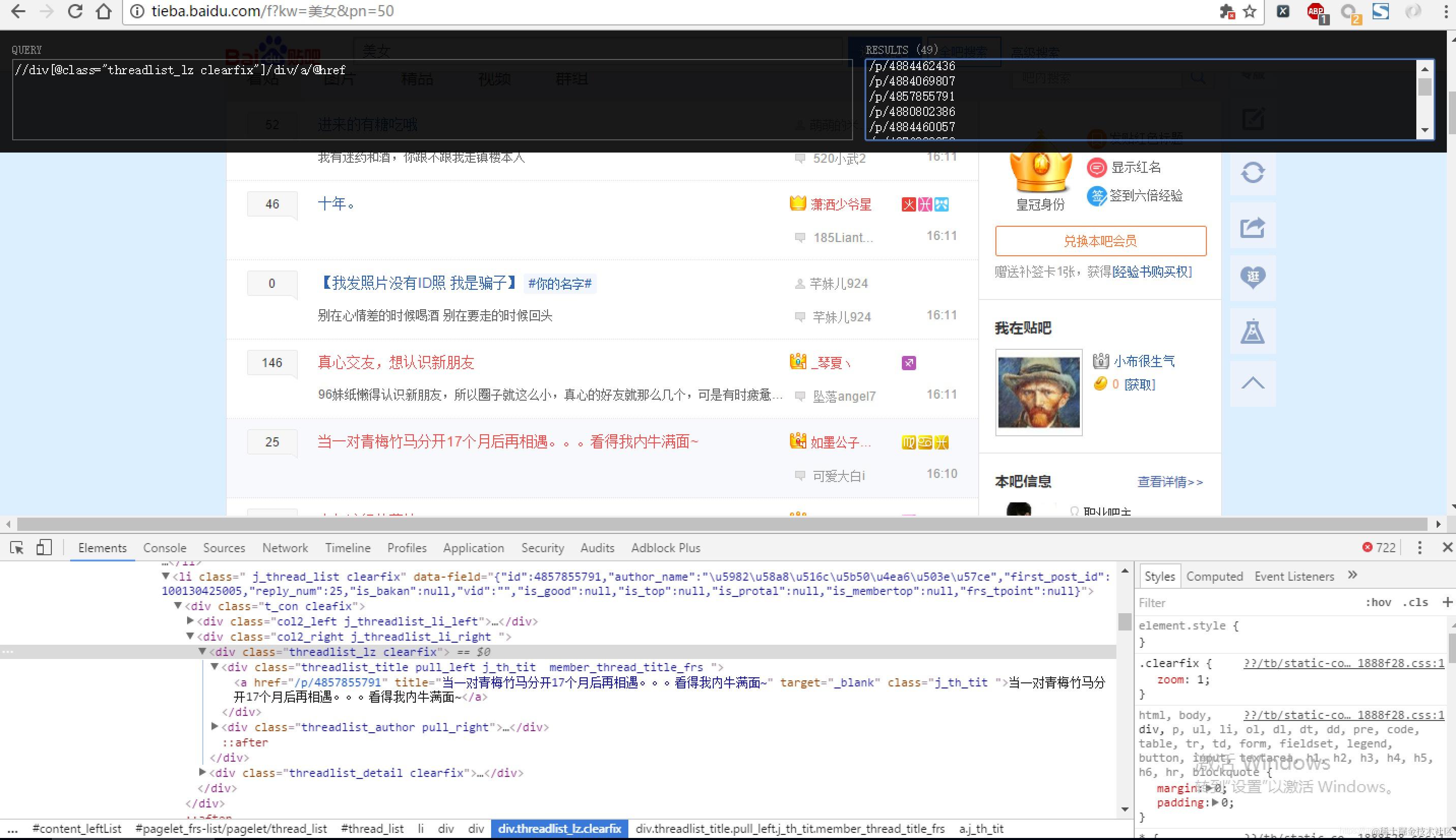 现在我们用XPath来做一个简单的爬虫,我们尝试爬取某个贴吧里的所有帖子,并且将该这个帖子里每个楼层发布的图片下载到本地。