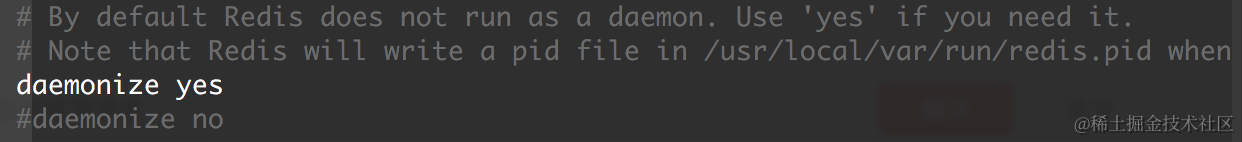 daemonize yno表示Redis默认不作为守护进程运行,即在运行redis-server /etc/redis/redis.conf时,将显示Redis启动提示画面;daemonize yes则默认后台运行,不必重新启动新的终端窗口执行其他命令,看个人喜好和实际需要。