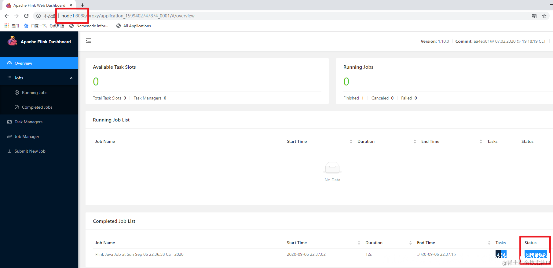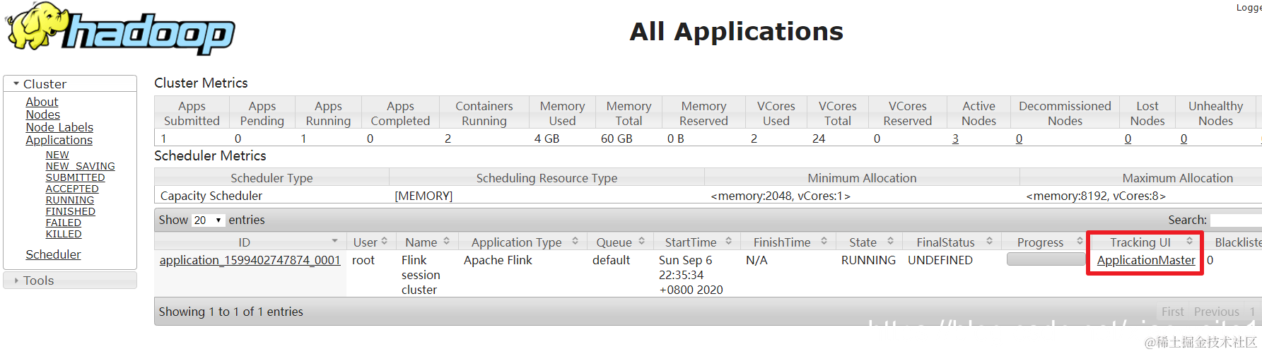 4.通过上方的ApplicationMaster可以进入Flink的管理界面
