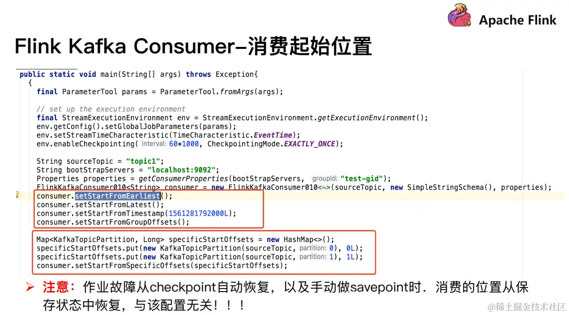 //kafkaSource.setStartFromEarliest();//设置直接从Earliest消费,和auto.offset.reset配置无关