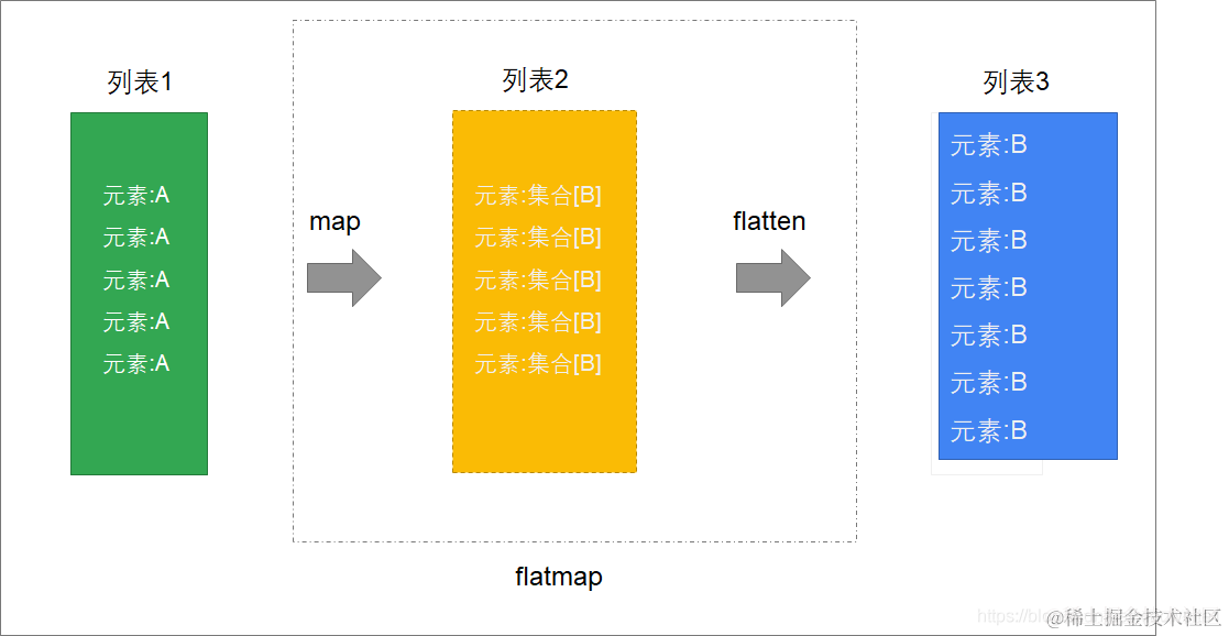就是说, 我们对待处理列表, 正常我们处理它 需要 先对其进行map操作, 然后再进行flatten操作 这样两步操作才可以得到我们想要的结果.