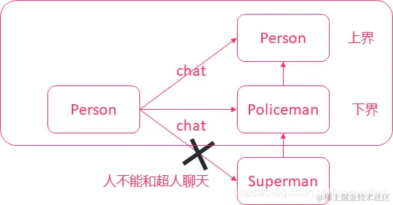 要控制Person只能和Person、Policeman聊天,但是不能和Superman聊天。此时,还需要给泛型添加一个下界。