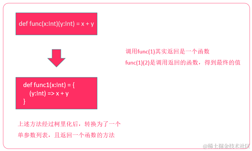 柯里化(Currying)允许方法接收多个参数列表的语法特性。
