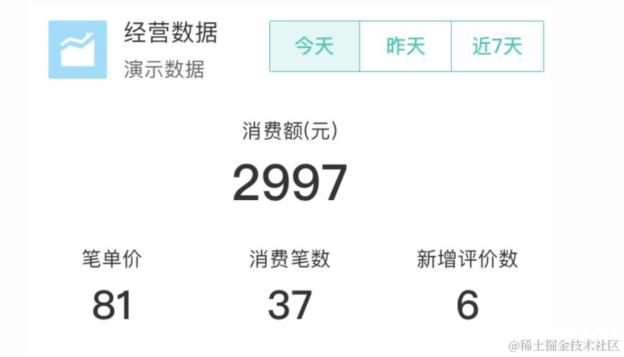 1、 美团开店宝的实时经营数据卡片。