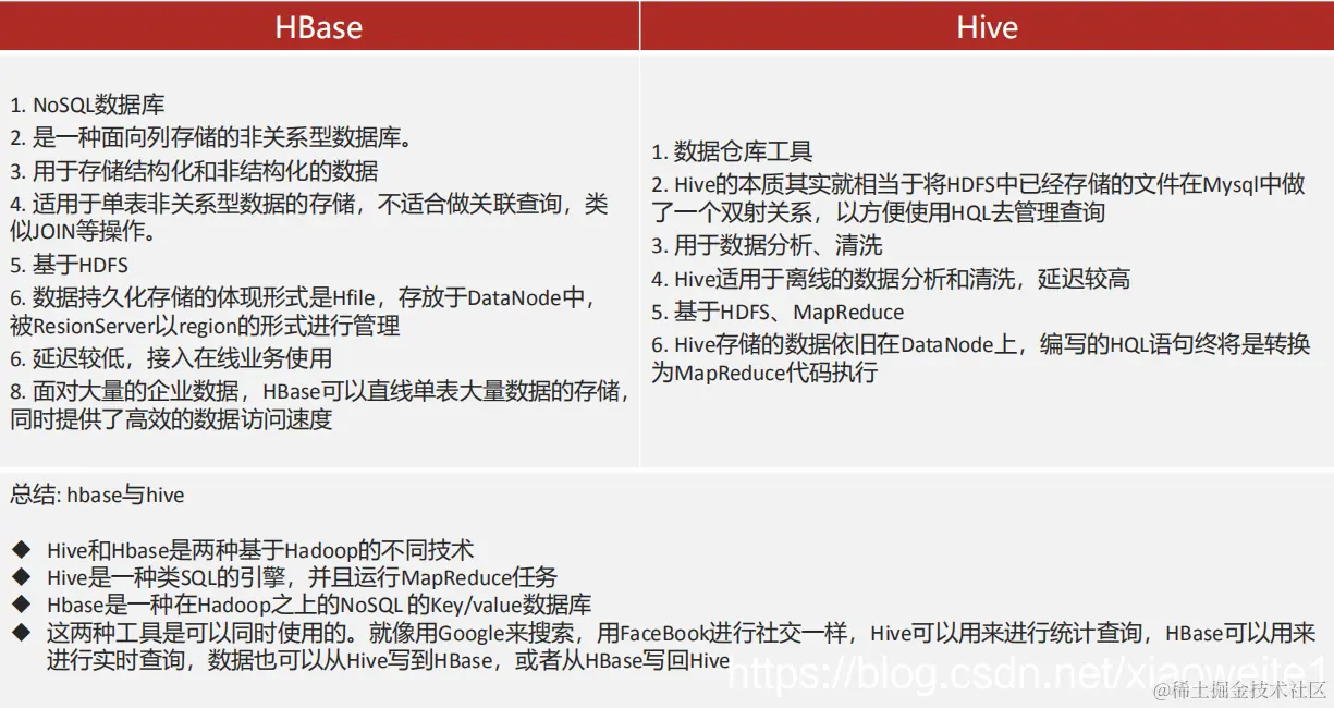 六、HBase与RDBMS、HDFS 、Hive的区别