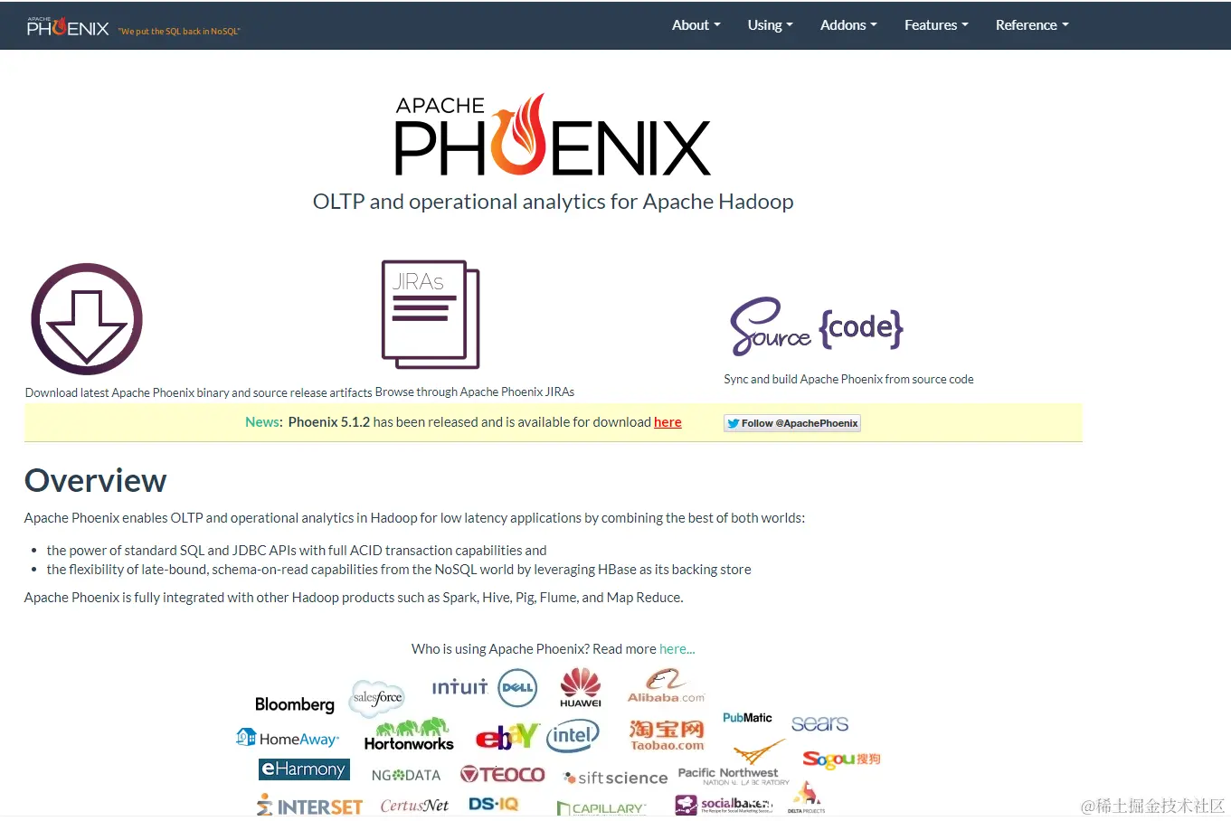 - Apache Phoenix可以很好地与其他的Hadoop组件整合在一起,例如:Spark、Hive、Flume以及MapReduce。