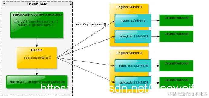 - Endpoint 协处理器类似传统数据库中的存储过程,客户端可以调用这些 Endpoint 协处理器执行一段 Server 端代码,并将 Server 端代码的结果返回给客户端进一步处理,最常见的用法就是进行聚集操作