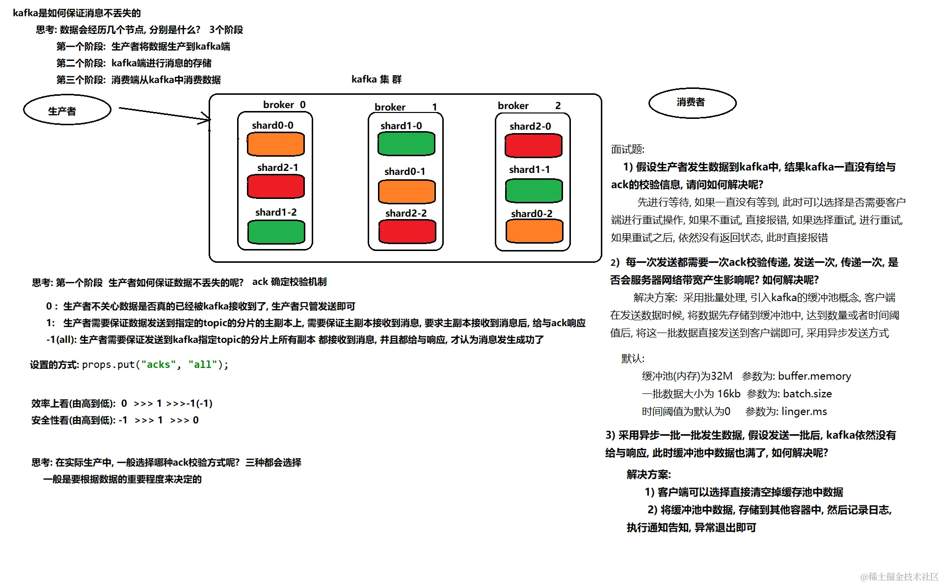 - a) 先将数据保存在生产者端的Buffer中。Buffer大小是2万条。 32M