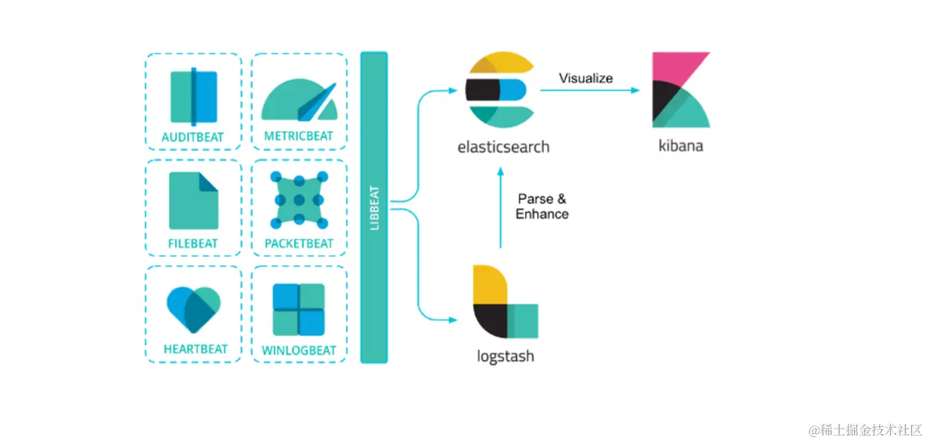 Beats可以直接将数据发送到Elasticsearch或者发送到Logstash,基于Logstash可以进一步地对数据进行处理,然后将处理后的数据存入到Elasticsearch,最后使用Kibana进行数据可视化。