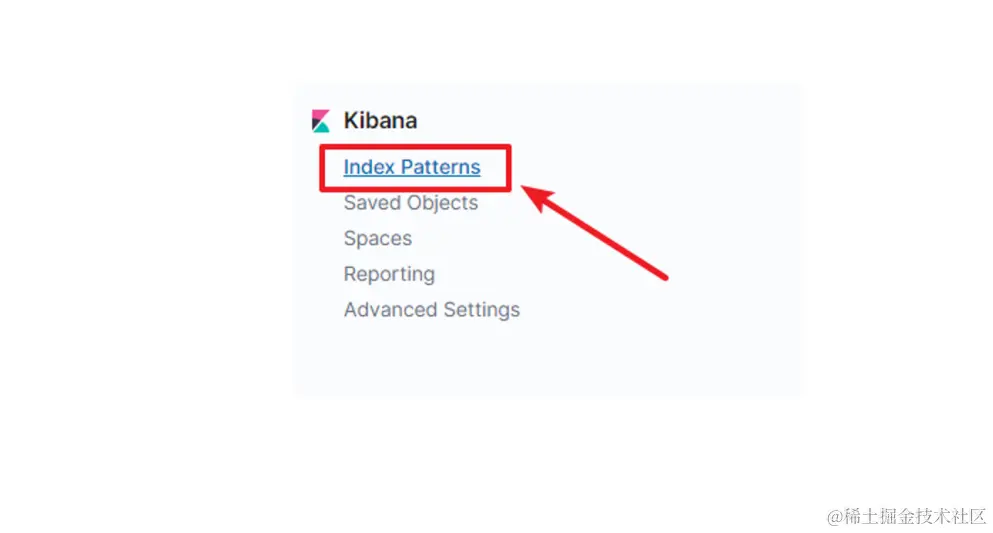 可以通过定义索引模式(Index Patterns)来对应匹配Elasticsearch索引。在第一次访问Kibana的时候,系统会提示我们定义一个索引模式。或者我们可以通过点击按钮,再点击Kibana下方的Index Patterns,来创建索引模式。参考下图: