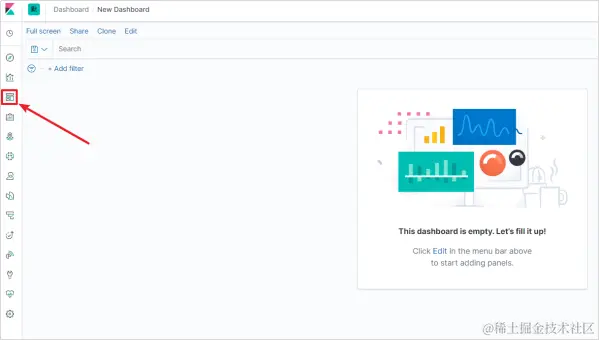 一、点击第三个组件图标,并创建一个新的Dashboard