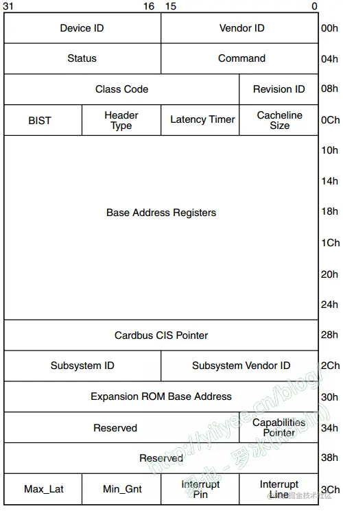 一般情况下,操作系统使用这些配置寄存器的内容来决定为PCI设备加载什么驱动程序:供应商ID、设备ID、版本号、类别代码、子系统供应商、子系统ID。具体的含义可以参考PCI/PCI-E的Spec手册。