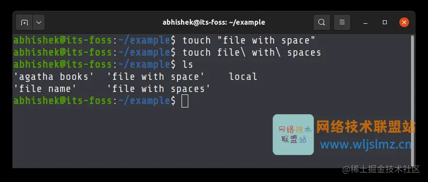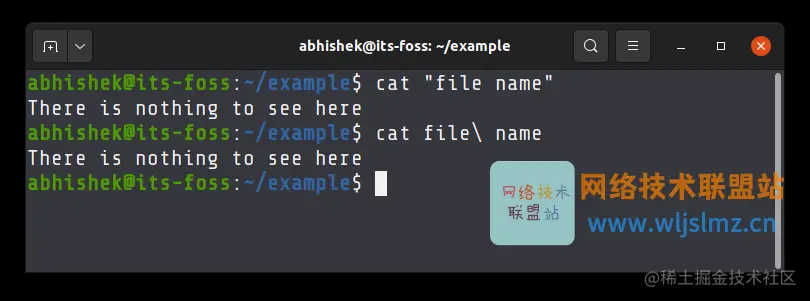 现在,您需要在终端中输入空格以在此处创建文件名,再次使用反斜杠或引号。