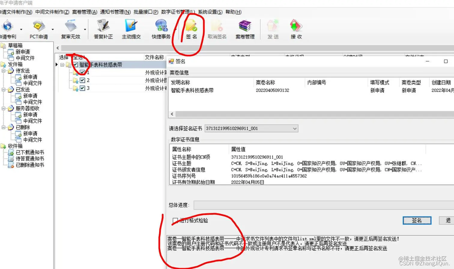 专利电子报件签名是出现请求书文件列表中的文件与list.xml里的文件不一致,请更正后再签名发送