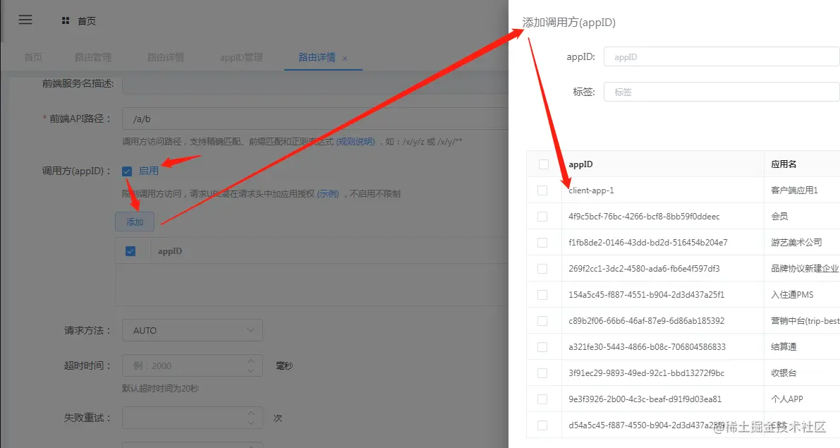 这样配置后:只有 client-app-1 客户端能访问 aservice/a/b,同时网关会根据 client-app-1 的认证方式,校验请求。