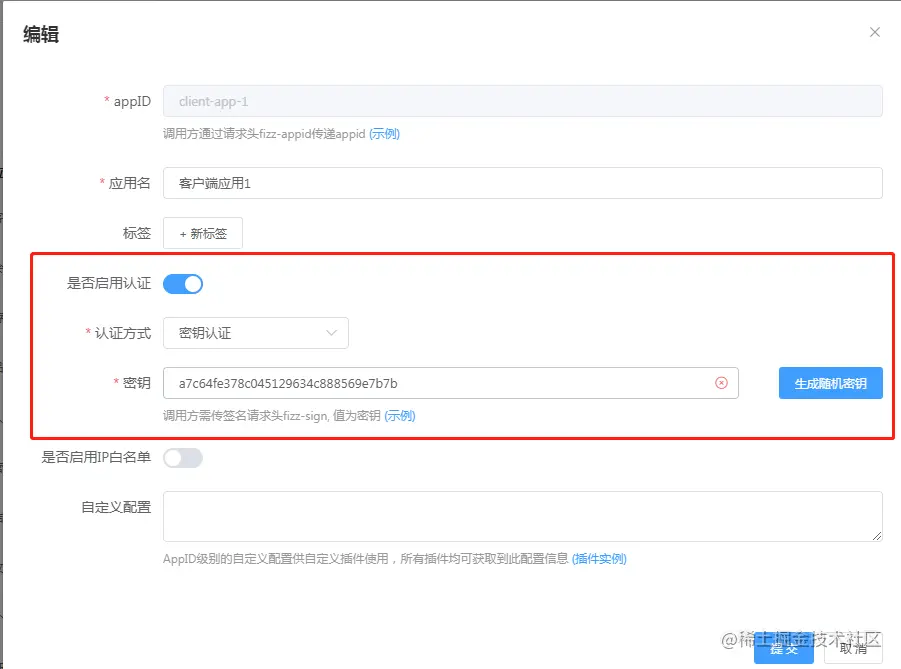 上面的配置:网关对请求头 fizz-appid=client-app-1 的客户端,会检验 fizz-sign 请求头是否为图中的密钥。