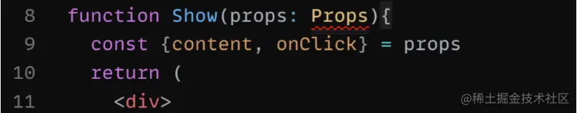 Show 组件会展示 content,并在用户点击 content 时把 content 传给 onClick。