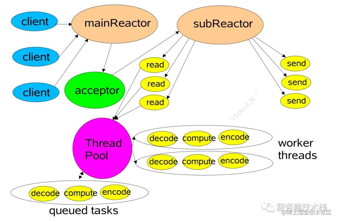Dubbo底层是使用netty作为通信组件的,了解Dubbo的线程模型之前我们先了解下Netty的线程模型,在Dubbo中使用的是netty的主从 Reactor 多线程模式, 如下图: