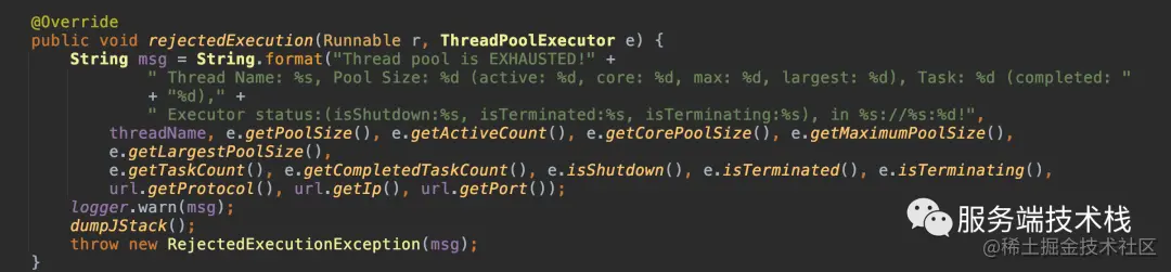 如果线程如果满了,dubbo会抛异常,按如下提示打印日志。