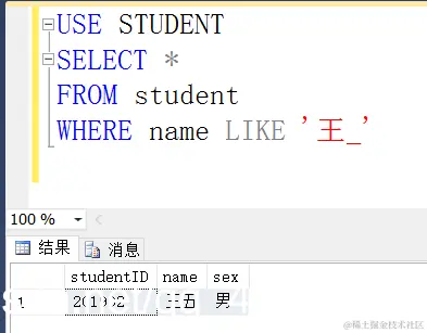 10.从student表中查询姓名以王开头,并且包含2个字符的学生的信息。
