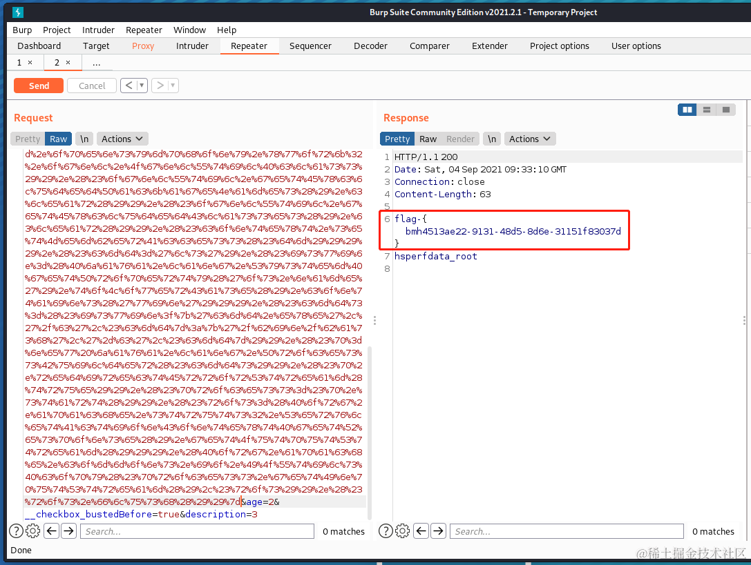 同样将payload进行url转码,截包,改包,发包,成功获得flag