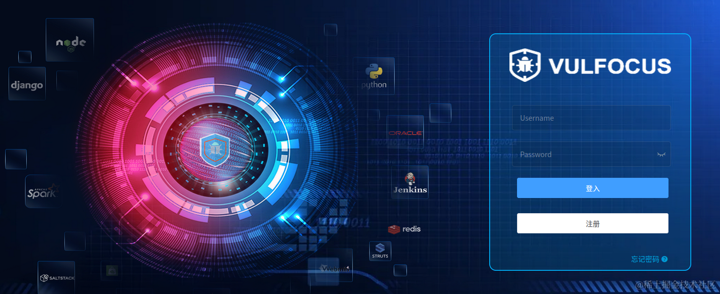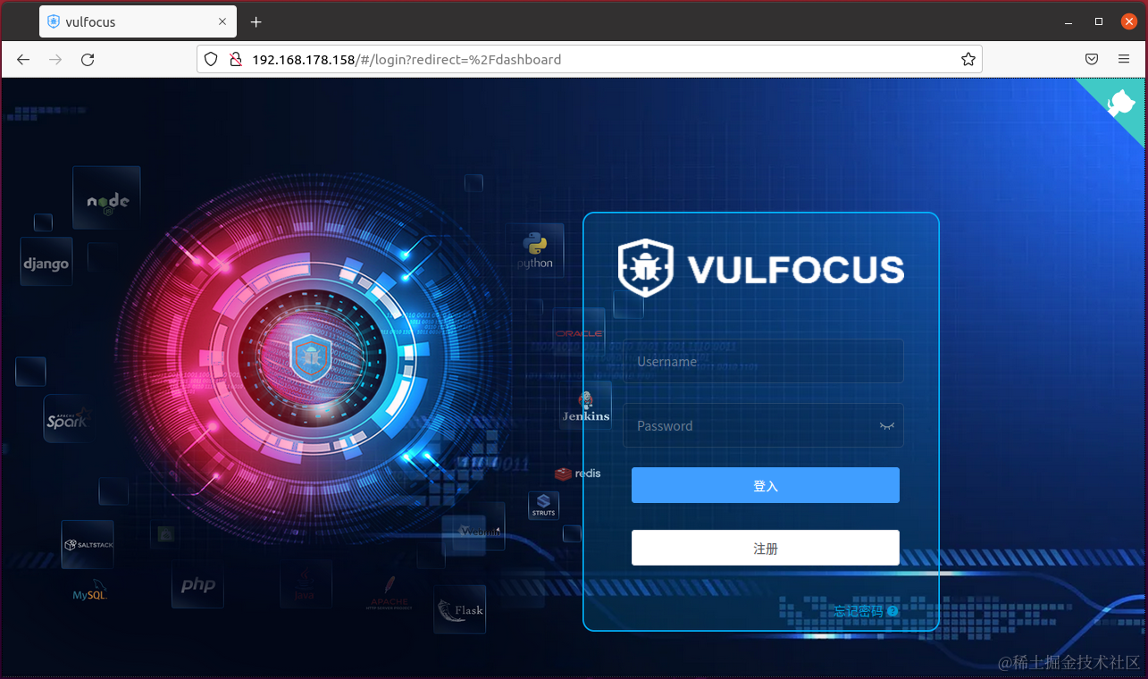 到此,Vulfocus安装并启动成功,为了方便下次运行,我们可以保存下Vulfocus的运行ID:670c37cfaccf,下次启动的时候可以直接输入ID启动Vulfocus环境。