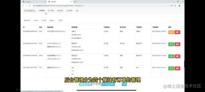 管理员:订单管理:对未付款 已付款 配送中 已完成的订单的信息进行增删改查,以及对已付款的订单进行发货的操作,对配送的完成的订单进行已完成的标记