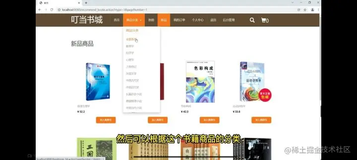 用户:商品分类:可以通过书名 类别搜索自己想要的书本