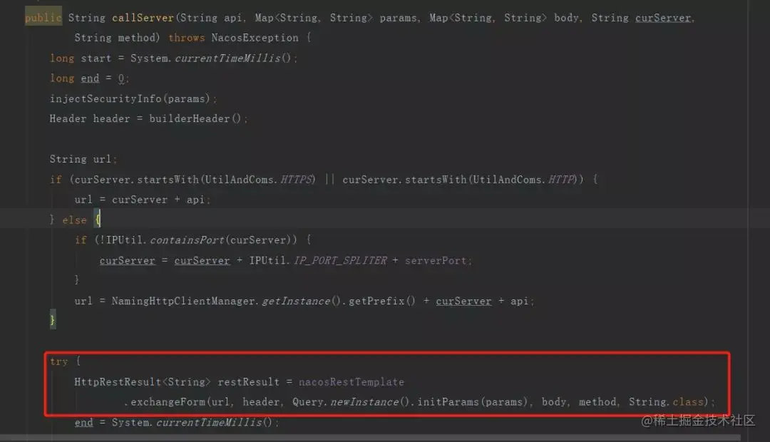 从这里我们可以看出,nacos客户端跟服务端的通信其实是通过http请求来的,服务注册,就是客户端发送一个简单的http请求来完成的。\