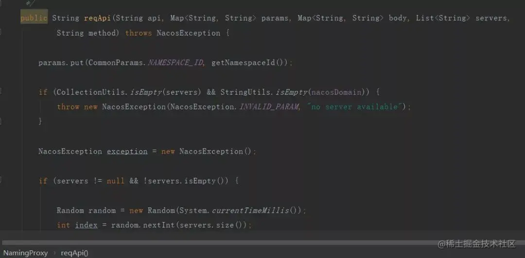 servers,就是我们配置的nacos服务端所在服务的ip和端口的集合,因为我们可能配置多个,这个应该不会为空吧,至少得配置一个吧