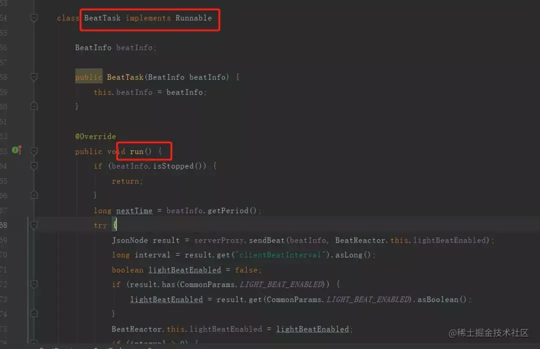 BeatTask实现了Runable接口,所以我们直接看run方法的实现。