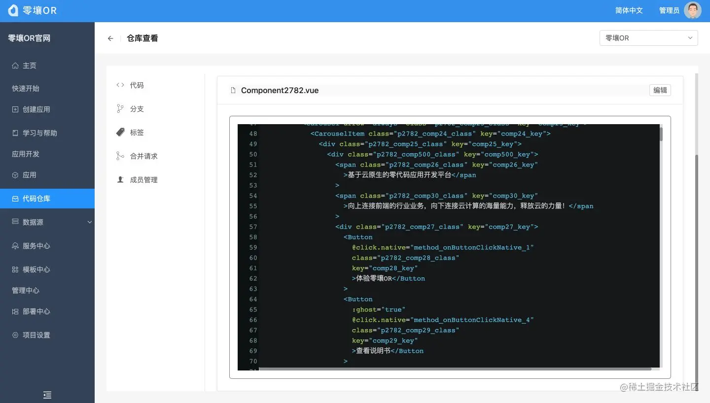 现有的零代码平台,大多通过“数据模型抽象”的方式建立数据结构和业务流程,这就导致了平台产生的应用都需要在平台上运行,产生了很强的耦合性。并且产出的应用没有源码,对于有着较高性能要求的应用很难做针对性的性能优化。在一些客户交付场景中,可能存在代码审查等需求,零壤交付产物源码的特性有着很大优势。