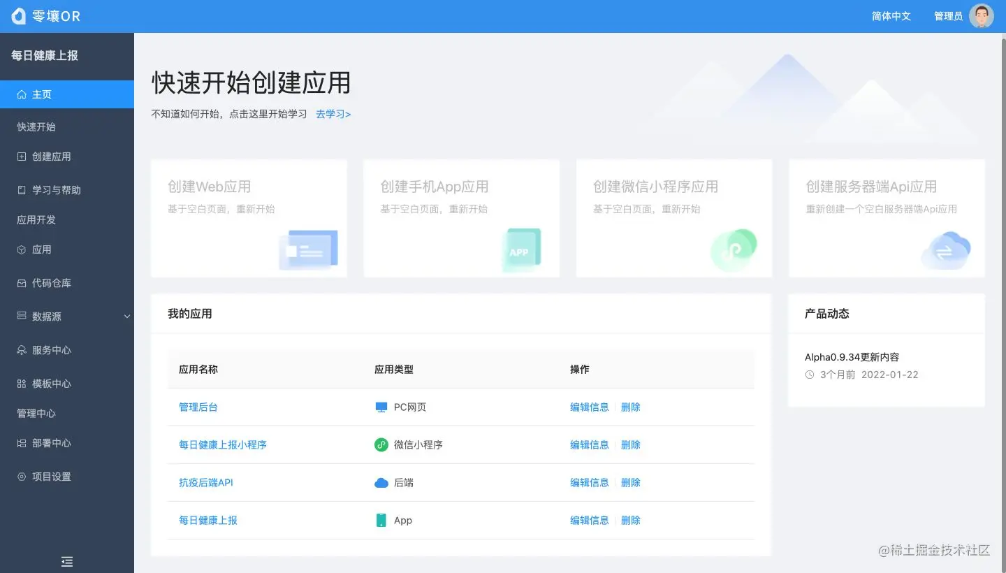 在我们的应用开发场景中,很多时候需要开发Android应用、iOS应用、微信小程序、Web(包含用户前台和管理员后台)、后端API,零壤支持您所需要的各种终端应用: