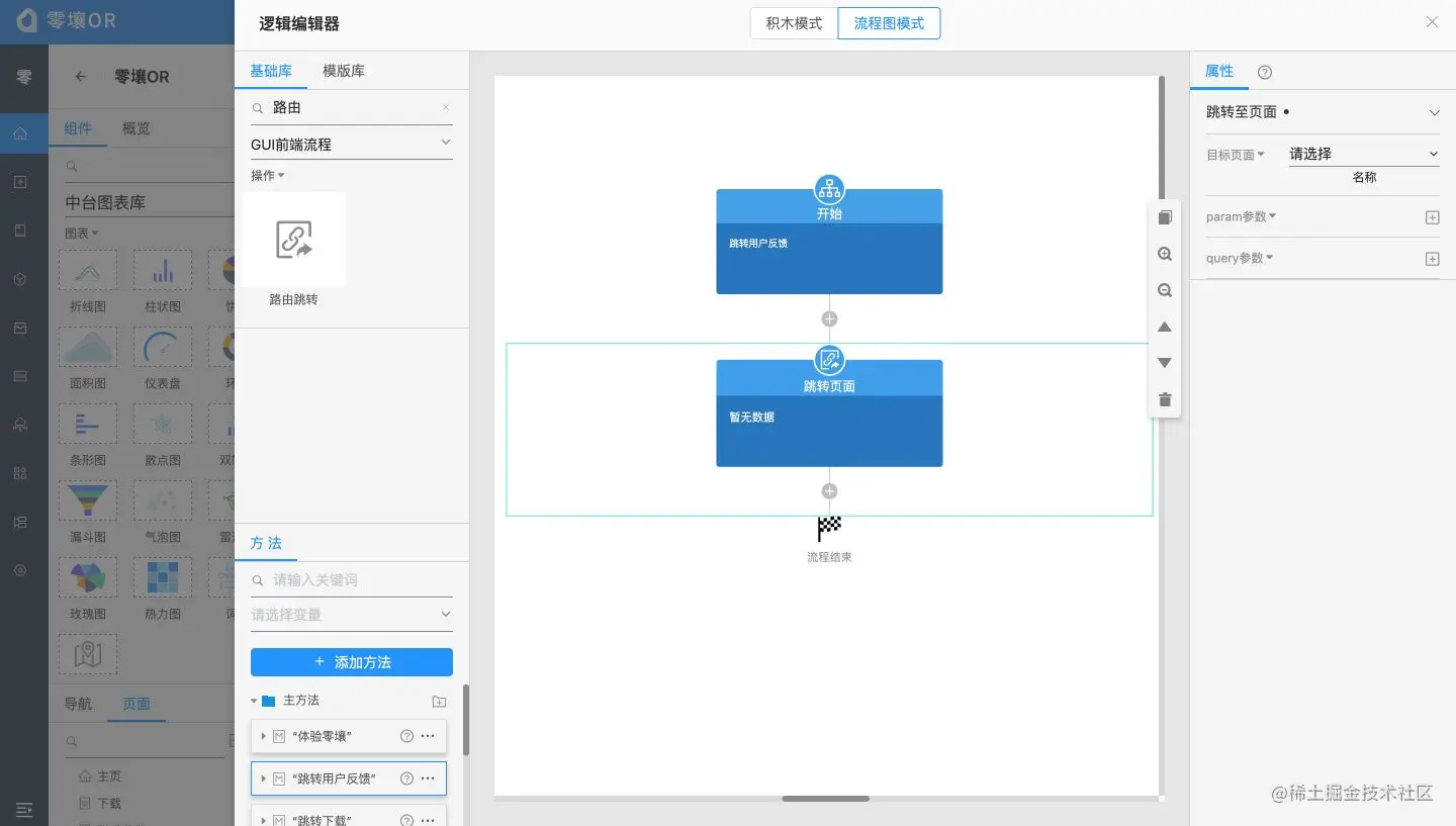 我们认为逻辑设计工具是一个零代码工具的灵魂和核心,我们提供了两种逻辑设计模式: