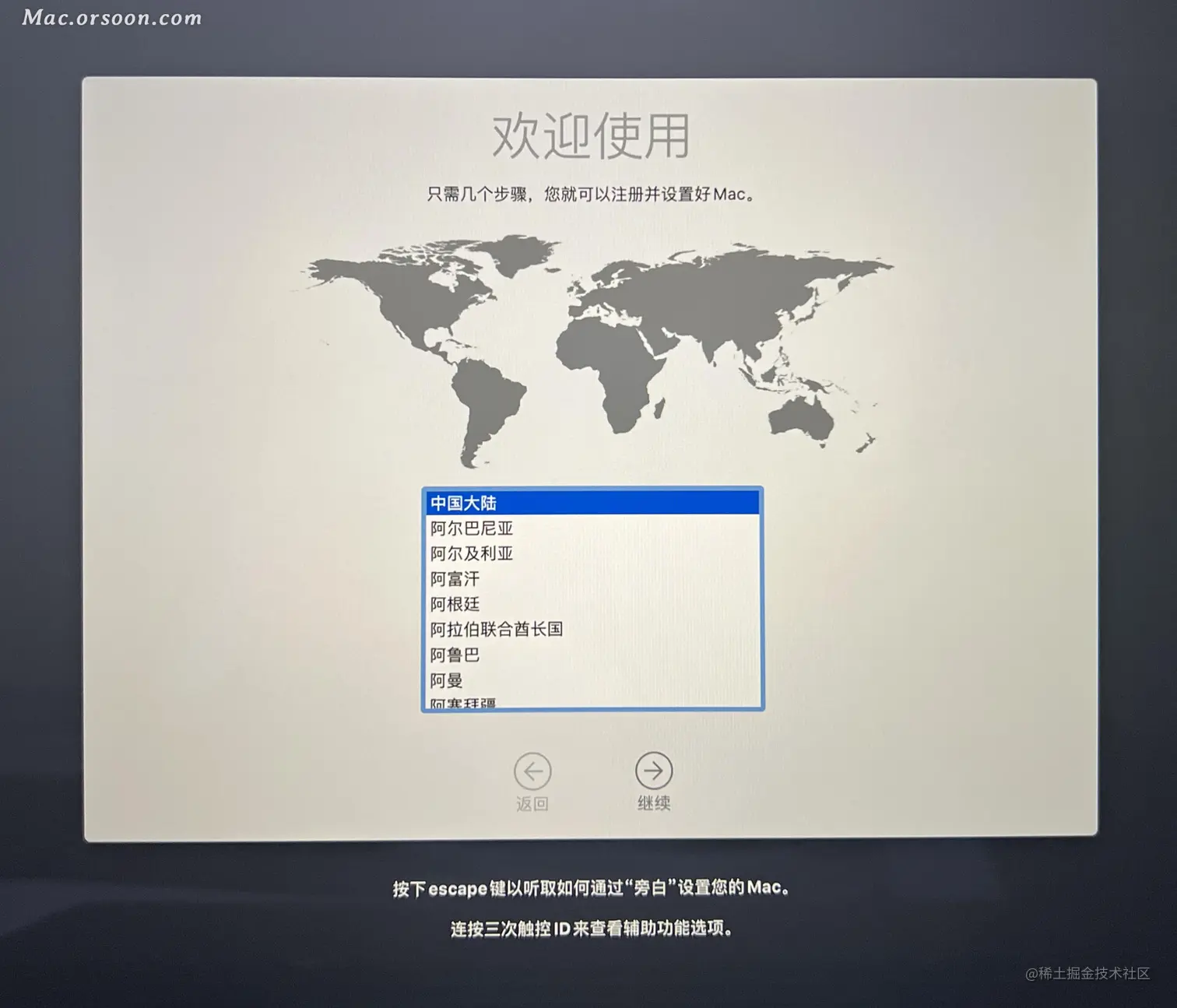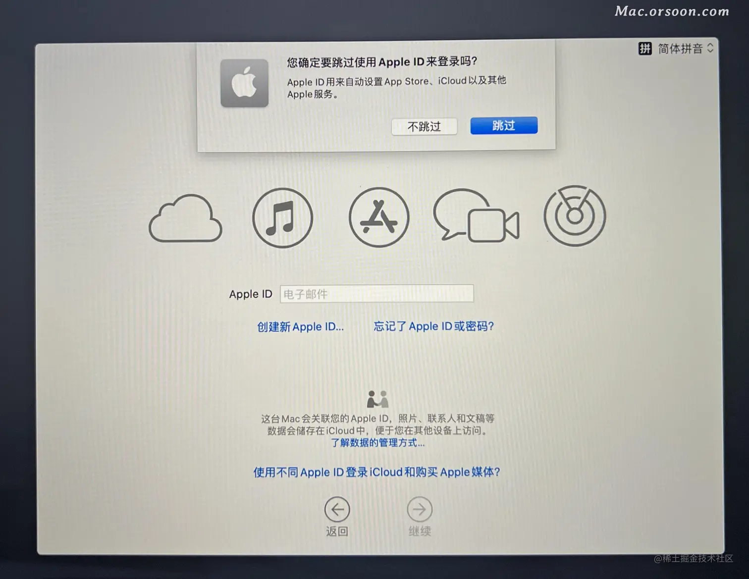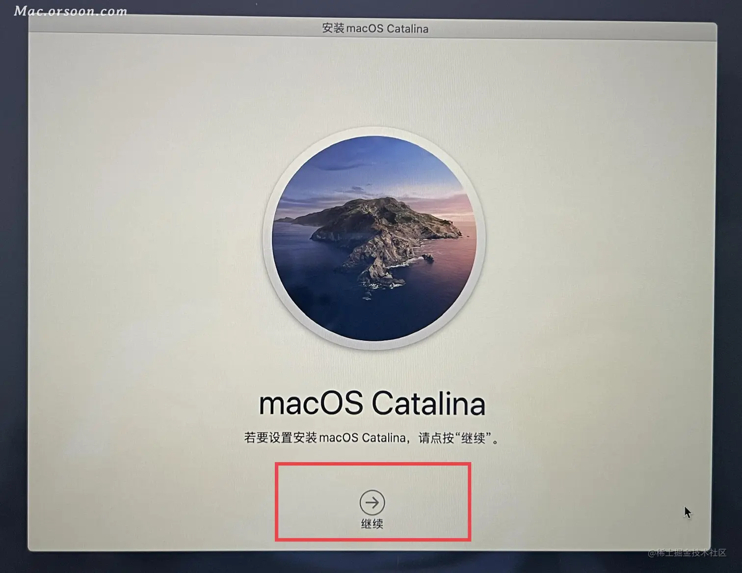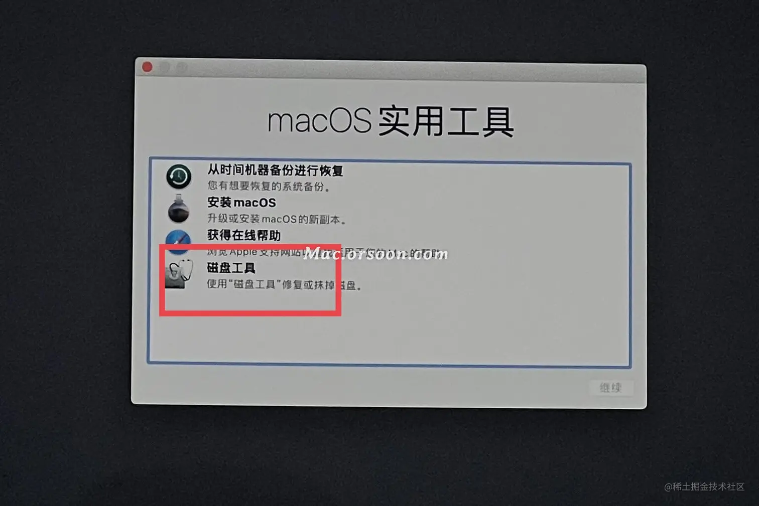 - 选中 安装MacOS 然后点 继续