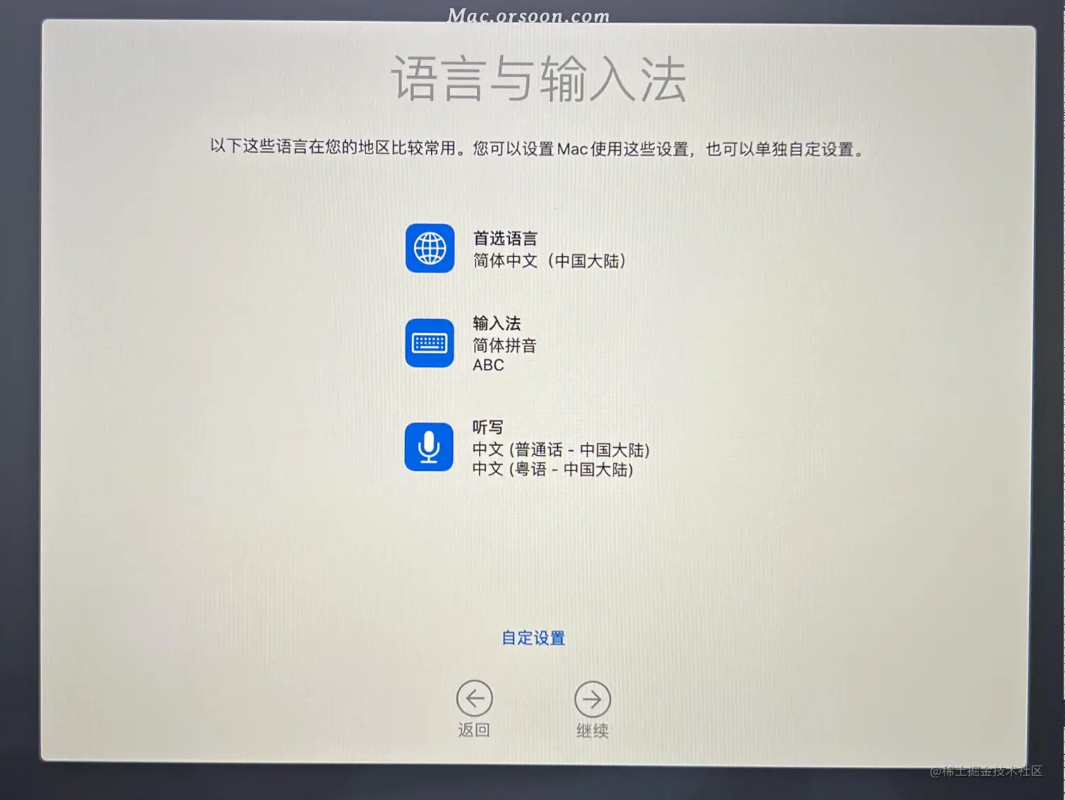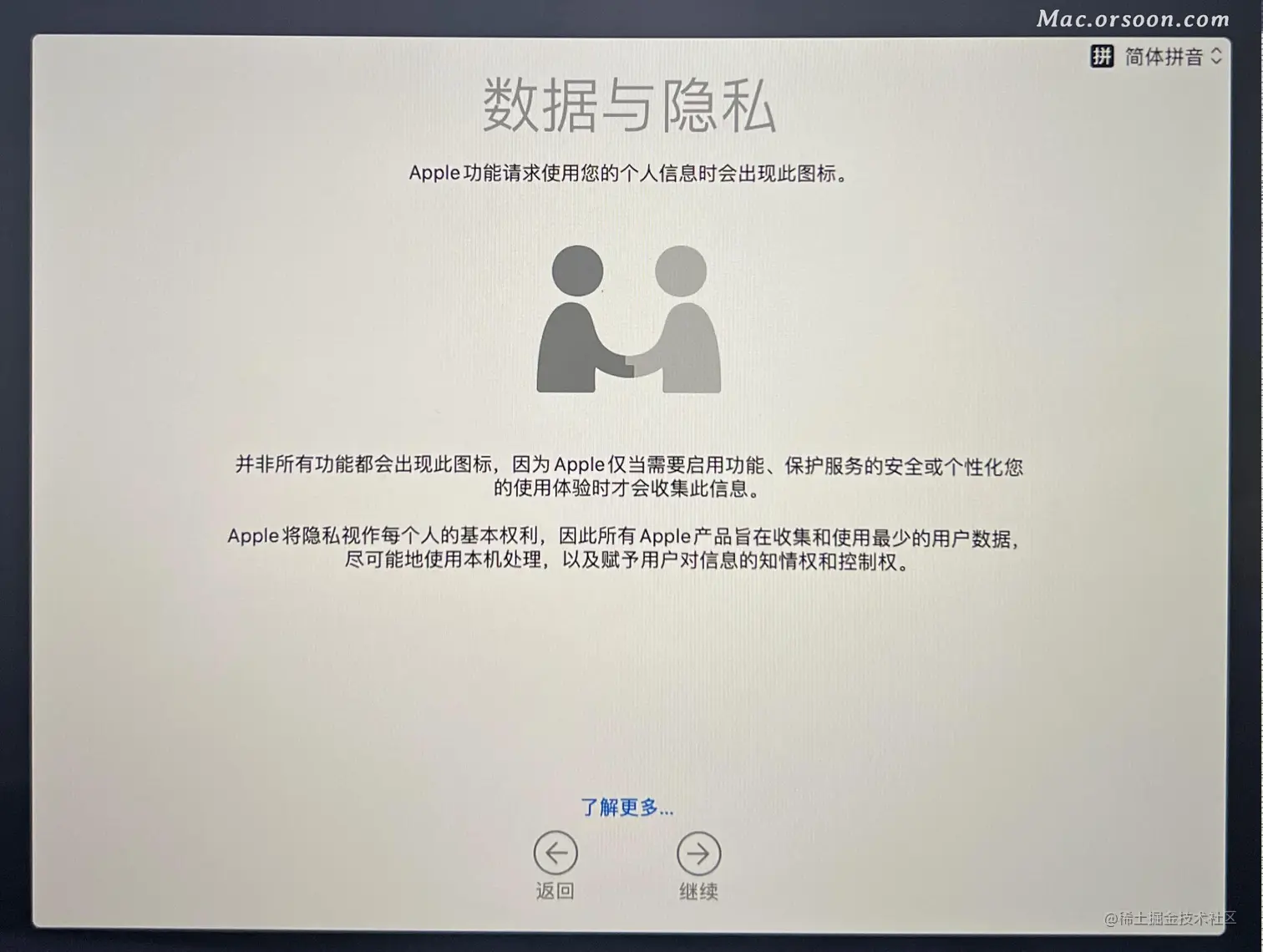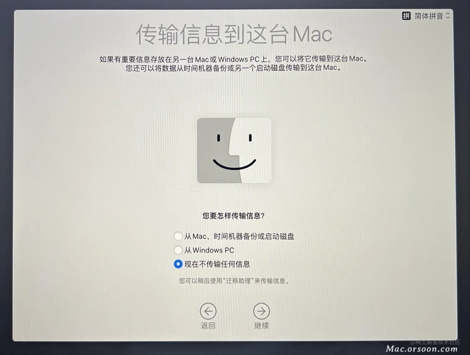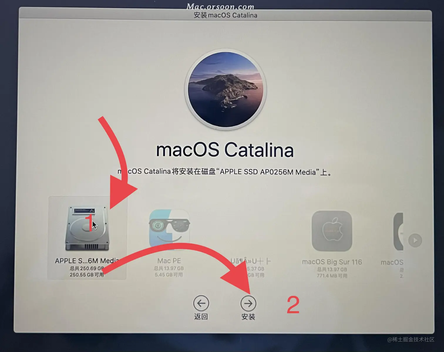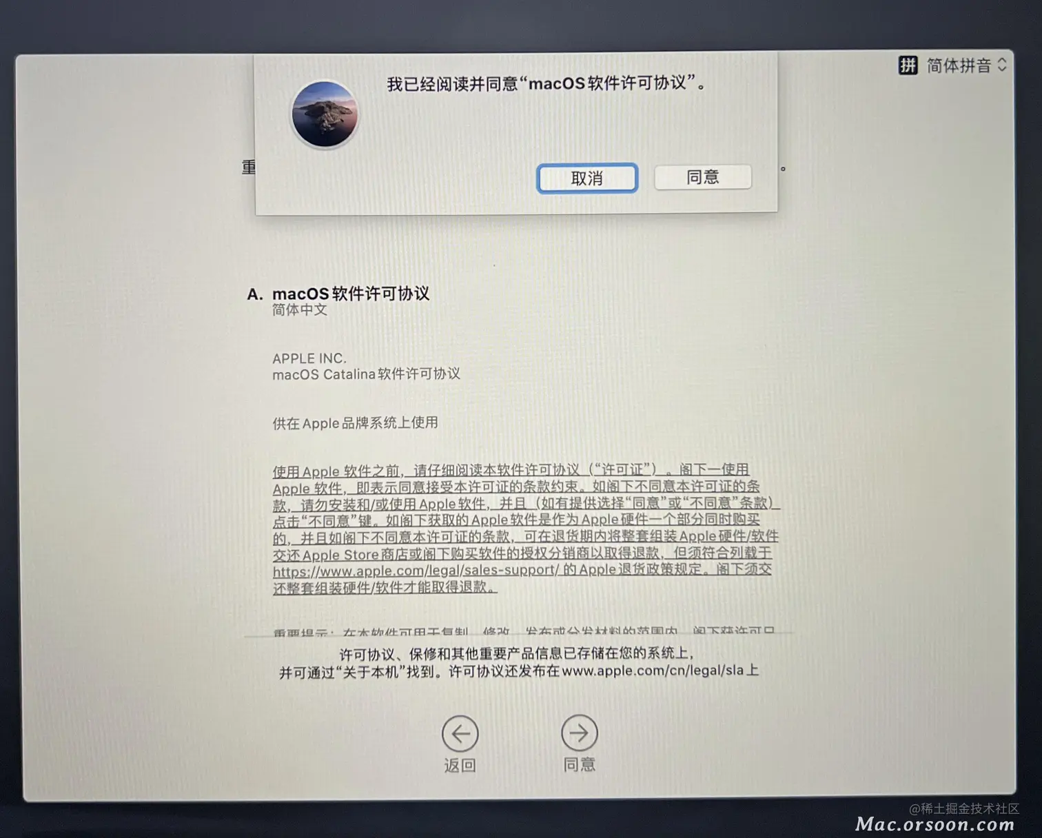 - 选中 安装MacOS 然后点 继续